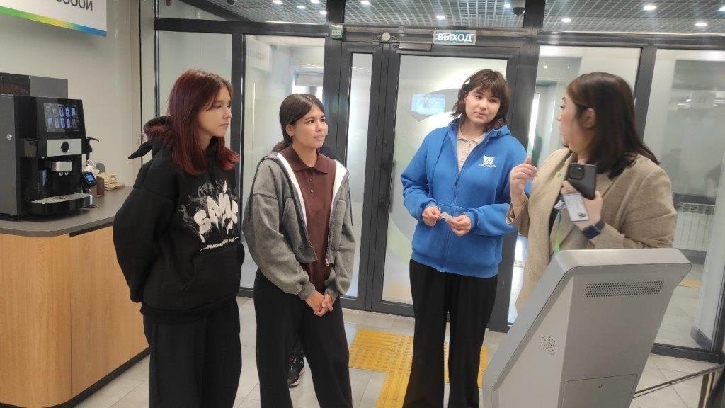 Офис Сбера поразил своей футуристической атмосферой. Рабочие места консультантов с беспроводной мебелью, мобильными тумбами и встроенными сейфами показались ребятам декорациями из научно-фантастического фильма о будущем. Они с интересом узнали, что такой дизайн создан для удобства и максимальной мобильности сотрудников.